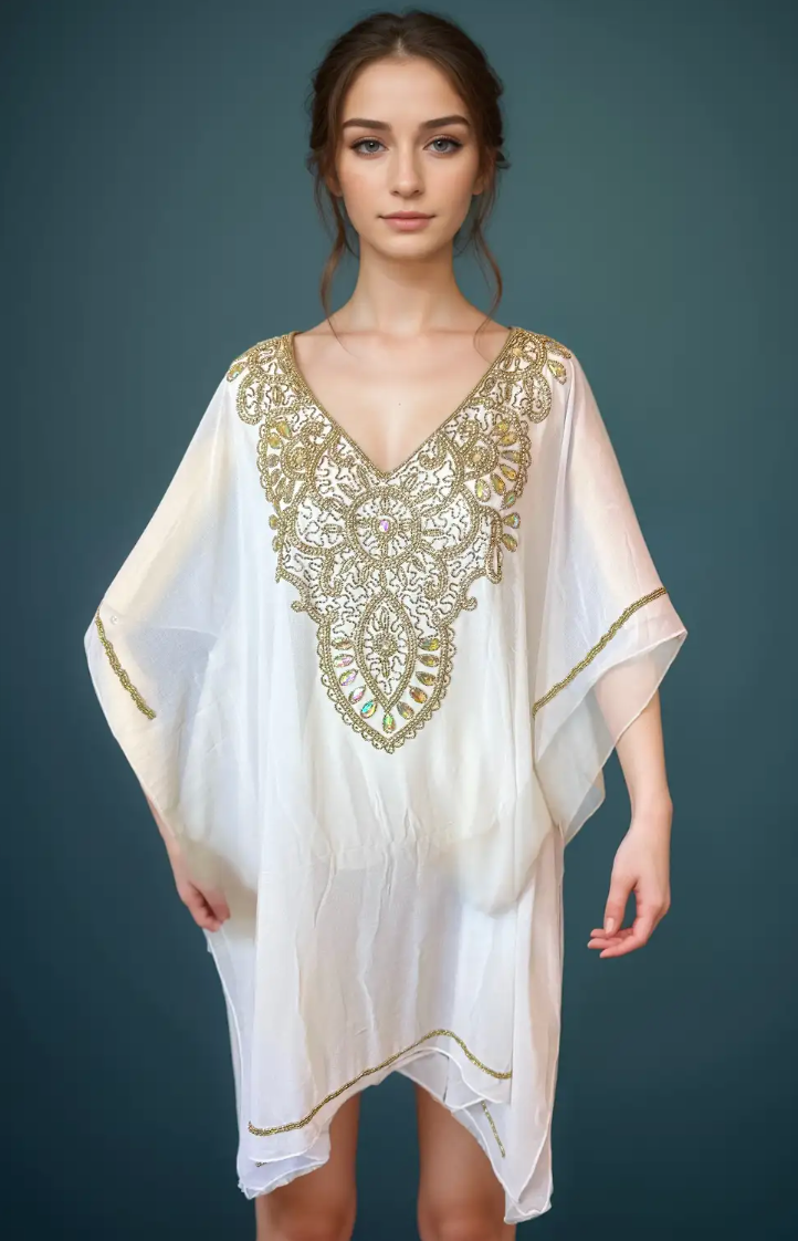 Wrap yourself in luxurious softness with our premium fabric selection, carefully chosen to provide a sensation of sheer indulgence against your skin. Whether it's a leisurely day at home, a stroll along the beach, or an evening soirée, our kaftan effortlessly elevates your style with its flowing silhouette and timeless charm.