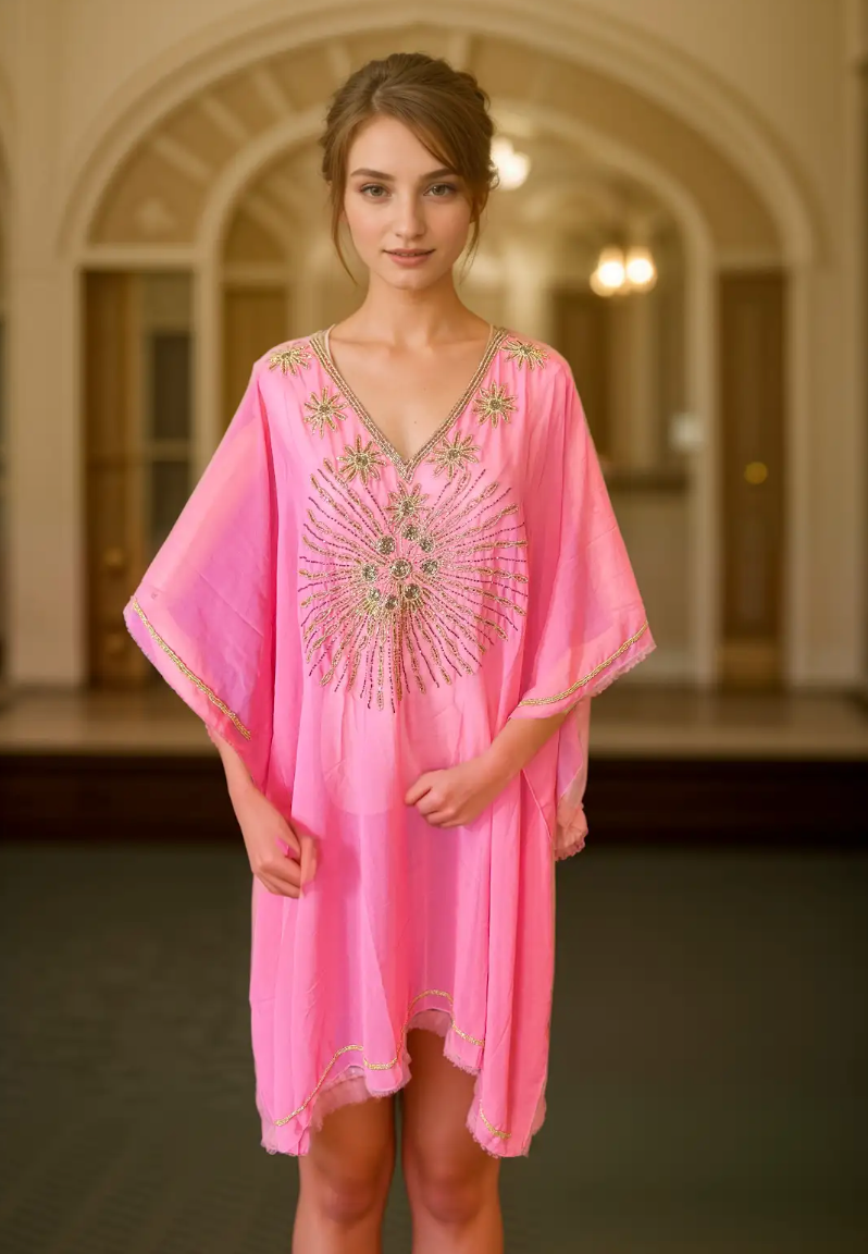 Wrap yourself in luxurious softness with our premium fabric selection, carefully chosen to provide a sensation of sheer indulgence against your skin. Whether it's a leisurely day at home, a stroll along the beach, or an evening soirée, our kaftan effortlessly elevates your style with its flowing silhouette and timeless charm.