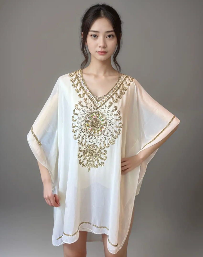 Wrap yourself in luxurious softness with our premium fabric selection, carefully chosen to provide a sensation of sheer indulgence against your skin. Whether it's a leisurely day at home, a stroll along the beach, or an evening soirée, our kaftan effortlessly elevates your style with its flowing silhouette and timeless charm.