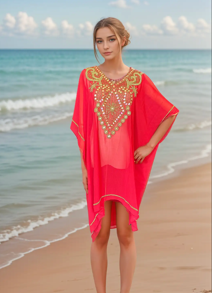 Wrap yourself in luxurious softness with our premium fabric selection, carefully chosen to provide a sensation of sheer indulgence against your skin. Whether it's a leisurely day at home, a stroll along the beach, or an evening soirée, our kaftan effortlessly elevates your style with its flowing silhouette and timeless charm.