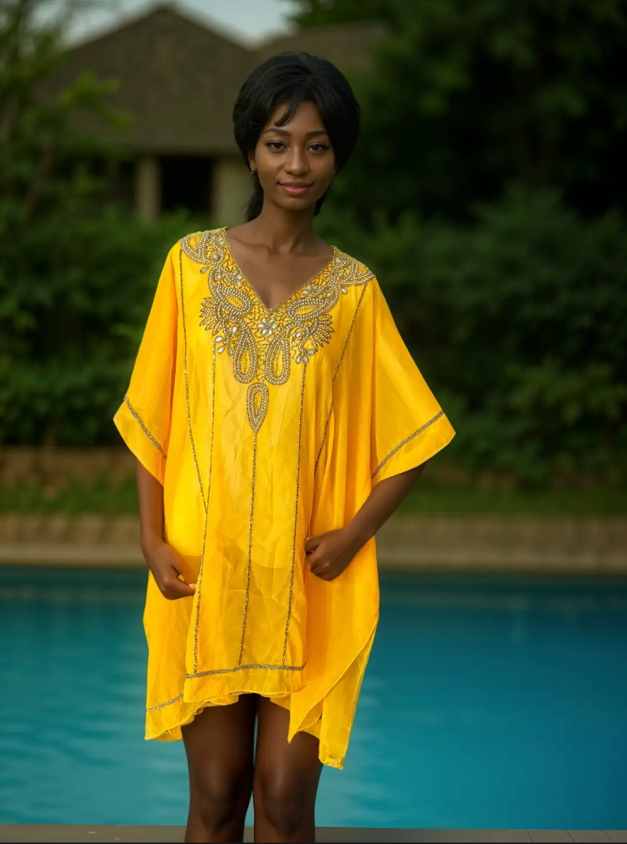 Wrap yourself in luxurious softness with our premium fabric selection, carefully chosen to provide a sensation of sheer indulgence against your skin. Whether it's a leisurely day at home, a stroll along the beach, or an evening soirée, our kaftan effortlessly elevates your style with its flowing silhouette and timeless charm.