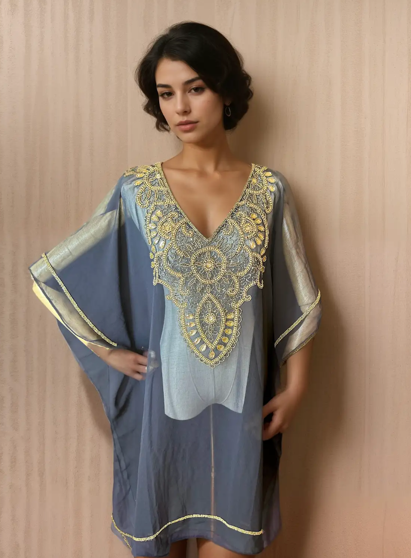 Wrap yourself in luxurious softness with our premium fabric selection, carefully chosen to provide a sensation of sheer indulgence against your skin. Whether it's a leisurely day at home, a stroll along the beach, or an evening soirée, our kaftan effortlessly elevates your style with its flowing silhouette and timeless charm.