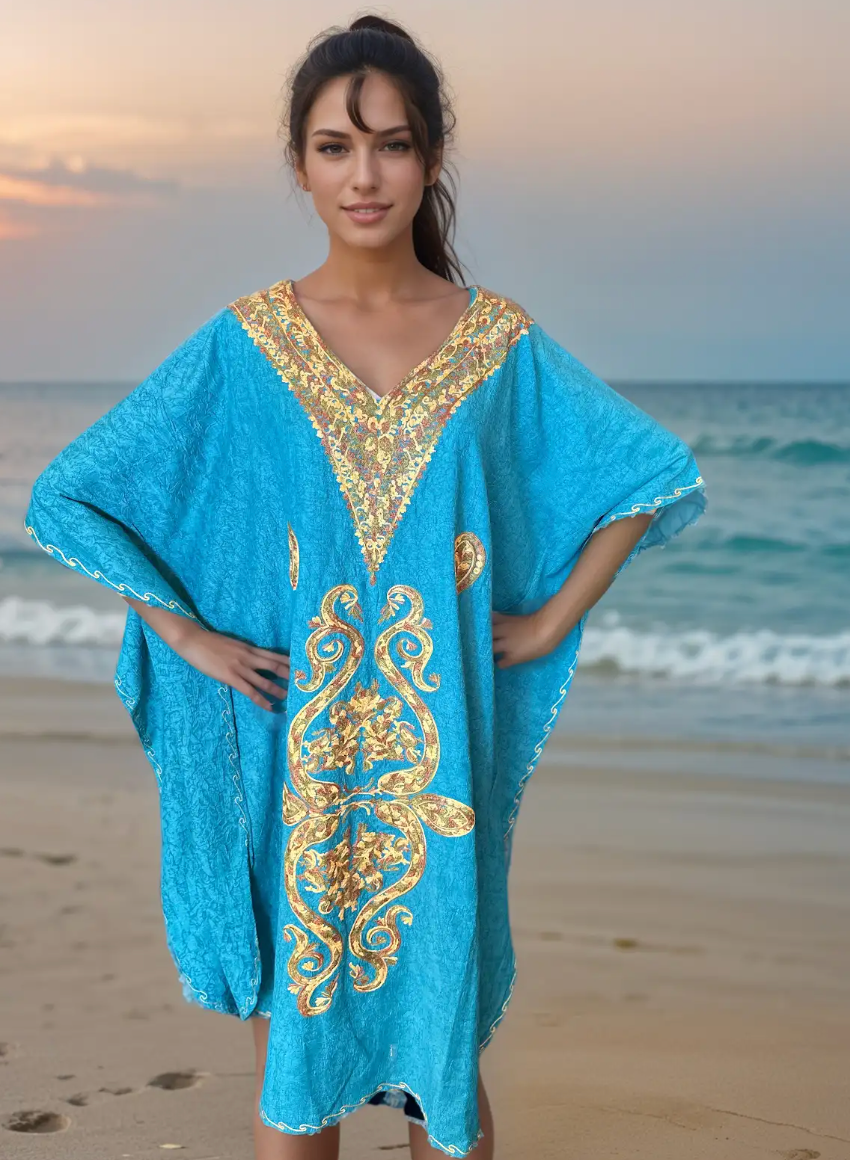 Wrap yourself in luxurious softness with our premium fabric selection, carefully chosen to provide a sensation of sheer indulgence against your skin. Whether it's a leisurely day at home, a stroll along the beach, or an evening soirée, our kaftan effortlessly elevates your style with its flowing silhouette and timeless charm.
