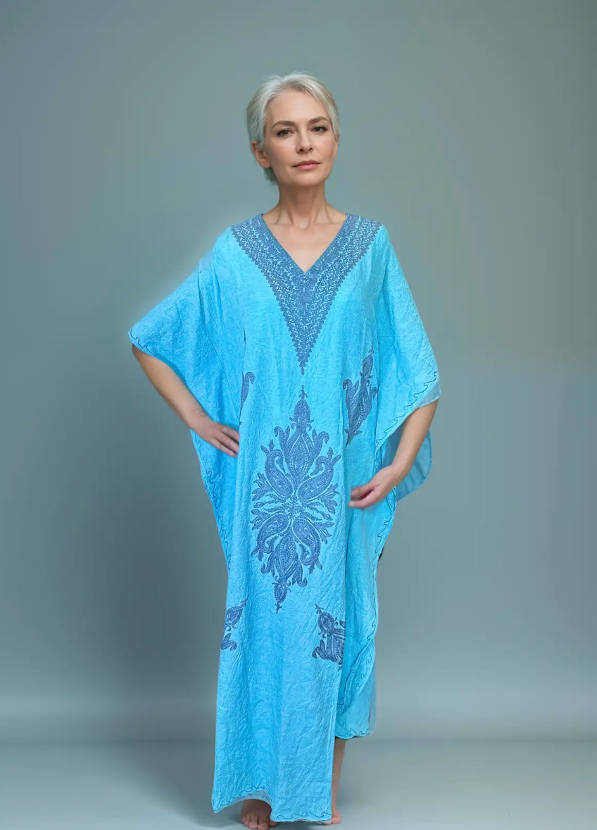 Wrap yourself in luxurious softness with our premium fabric selection, carefully chosen to provide a sensation of sheer indulgence against your skin. Whether it's a leisurely day at home, a stroll along the beach, or an evening soirée, our kaftan effortlessly elevates your style with its flowing silhouette and timeless charm.