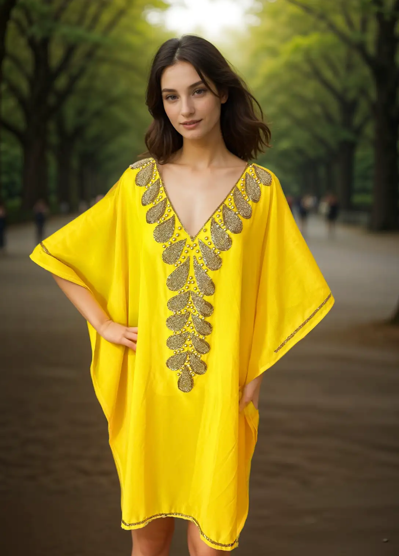 Wrap yourself in luxurious softness with our premium fabric selection, carefully chosen to provide a sensation of sheer indulgence against your skin. Whether it's a leisurely day at home, a stroll along the beach, or an evening soirée, our kaftan effortlessly elevates your style with its flowing silhouette and timeless charm.